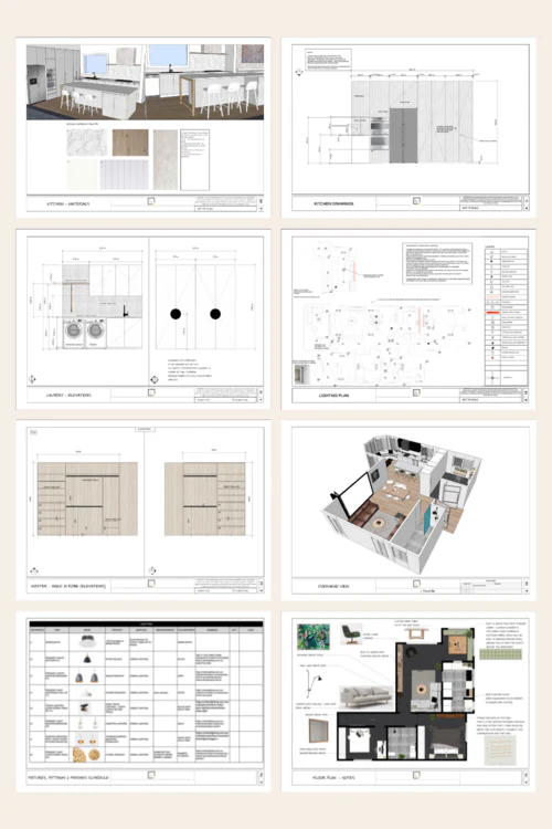 After approval of concepts and materials, we enter the design development phase—refining every detail to prepare the project for construction. This includes detailed interior elevations, material applications, joinery refinements, and design specifications.